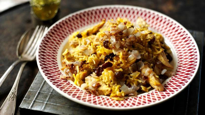 Baharatlı Hint usulü tavuk yemeği.
