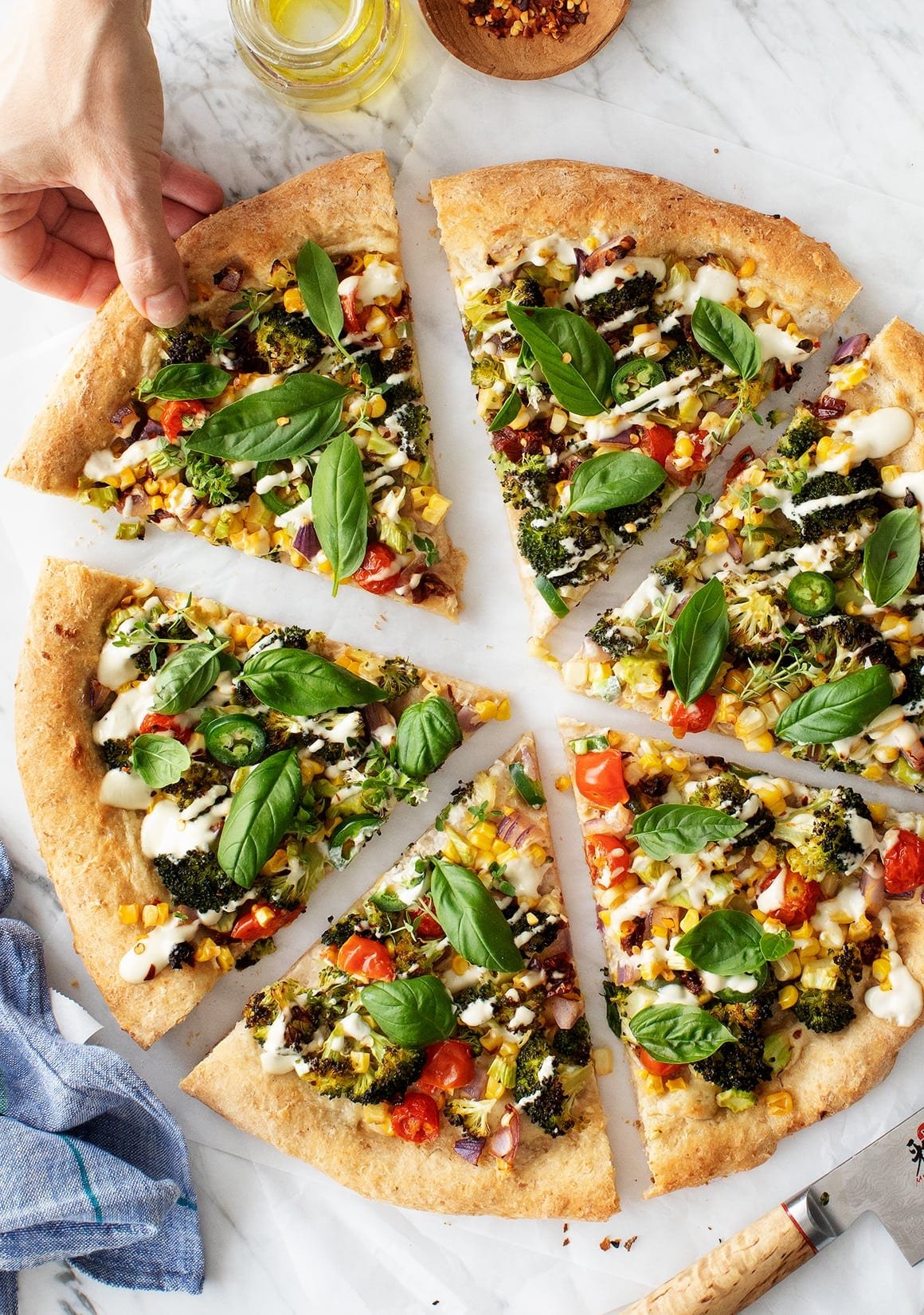 Domates, fesleğen ve sarımsaklı.